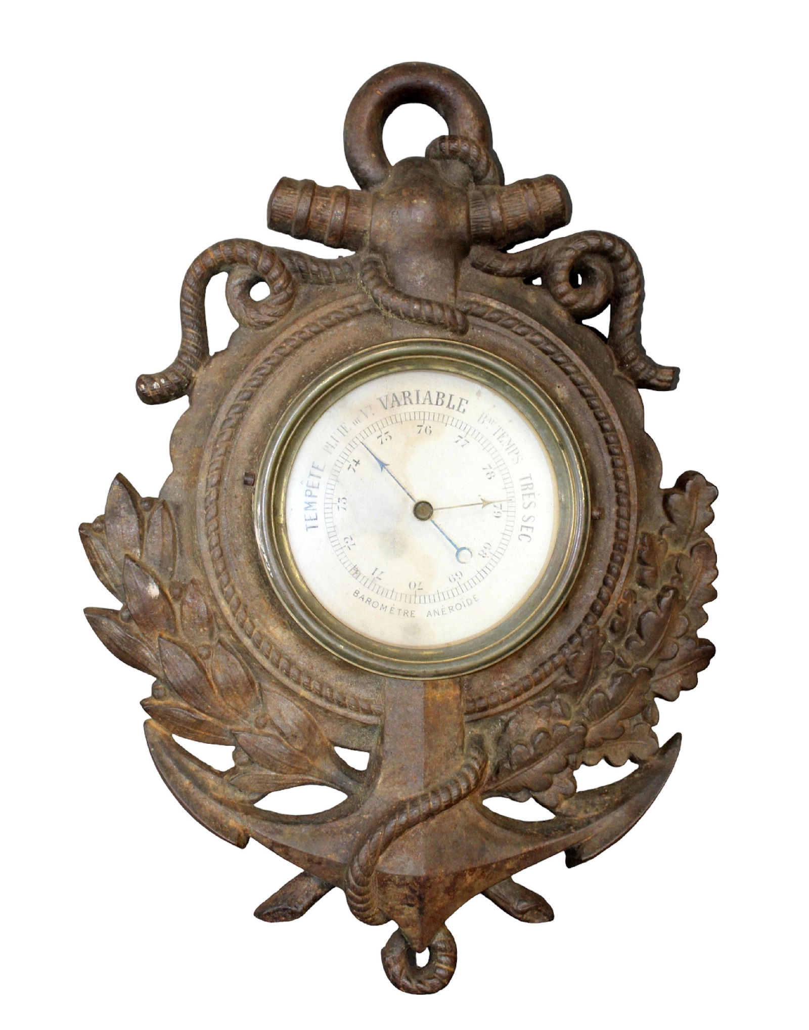French cast iron wall mount nautical barometer