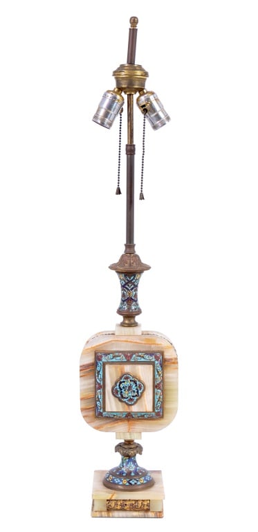 French Champleve and Banded Onyx Table Lamp