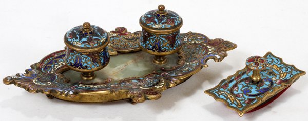 FRENCH CHAMPLEVÉ & ONYX TWO-PIECE DESK SET