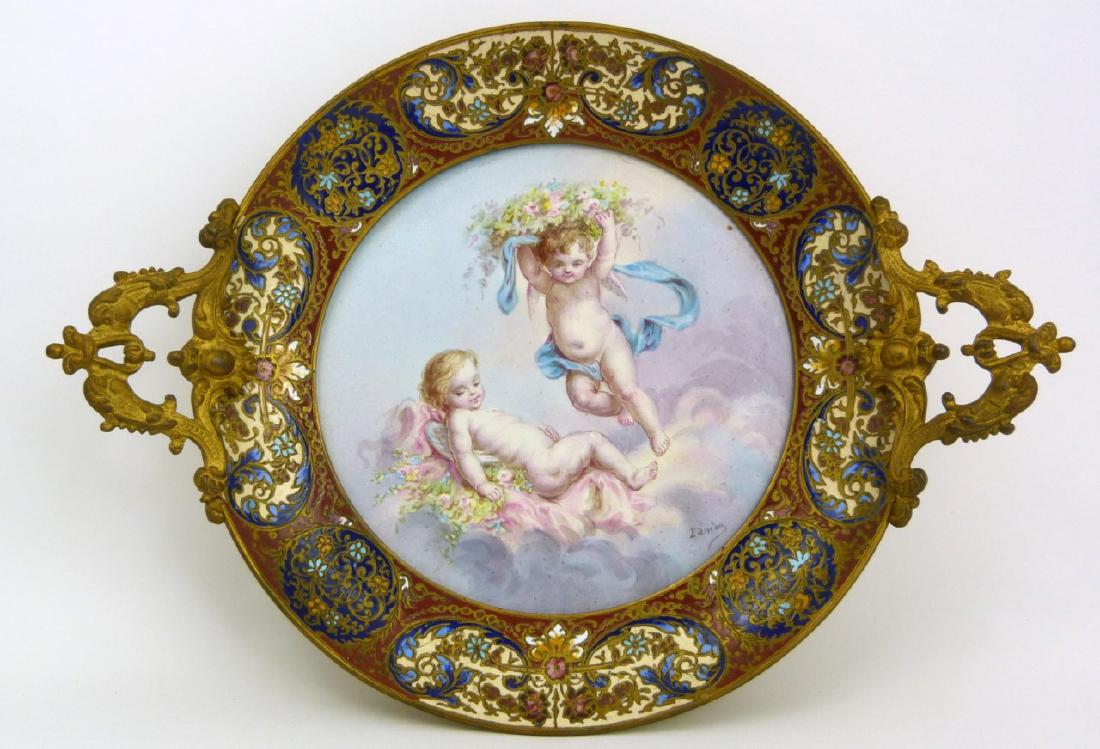 FRENCH CHAMPLEVE BRONZE & PORCELAIN TRAY
