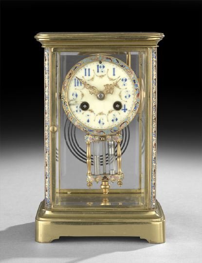 French Champleve Enamel Clock