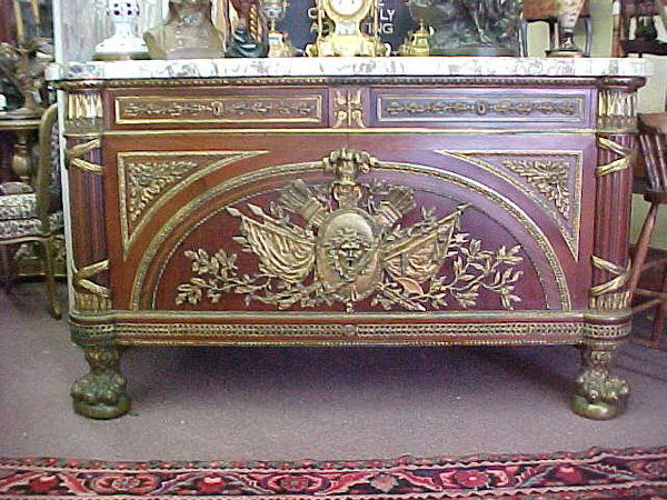 FRENCH CLASSICAL MARBLE TOP CREDENZA Thi