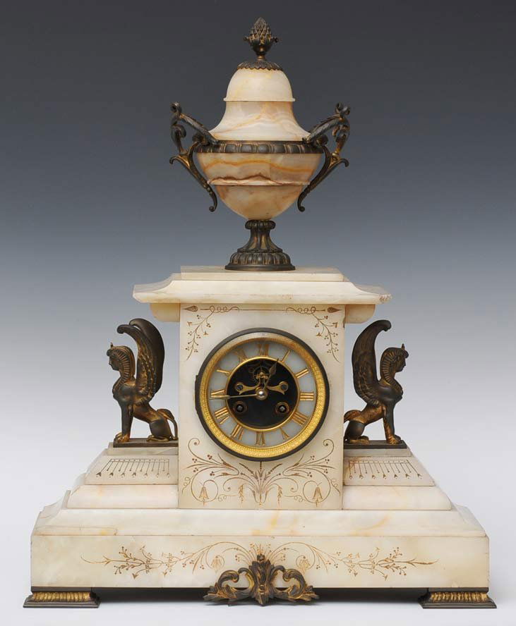 RENAISSANCE REVIVAL BRONZE-MOUNTED ROUGE-DE-FER ARCHITECTURAL MARBLE MANTEL CLOCK 19th century - H:Sloans & Kenyon4.3(87)$12010 hrs Left