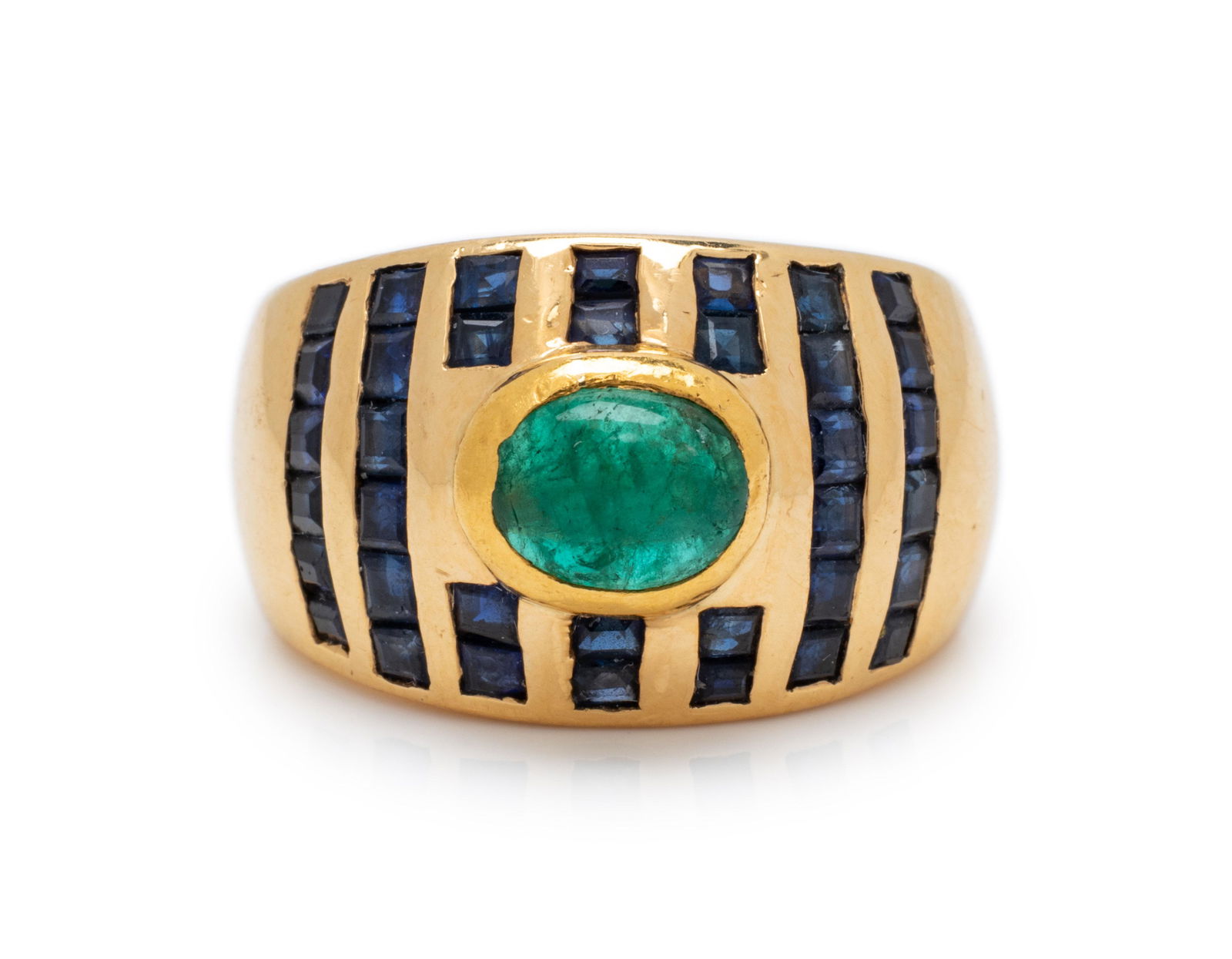 FRENCH, EMERALD AND SAPPHIRE RING