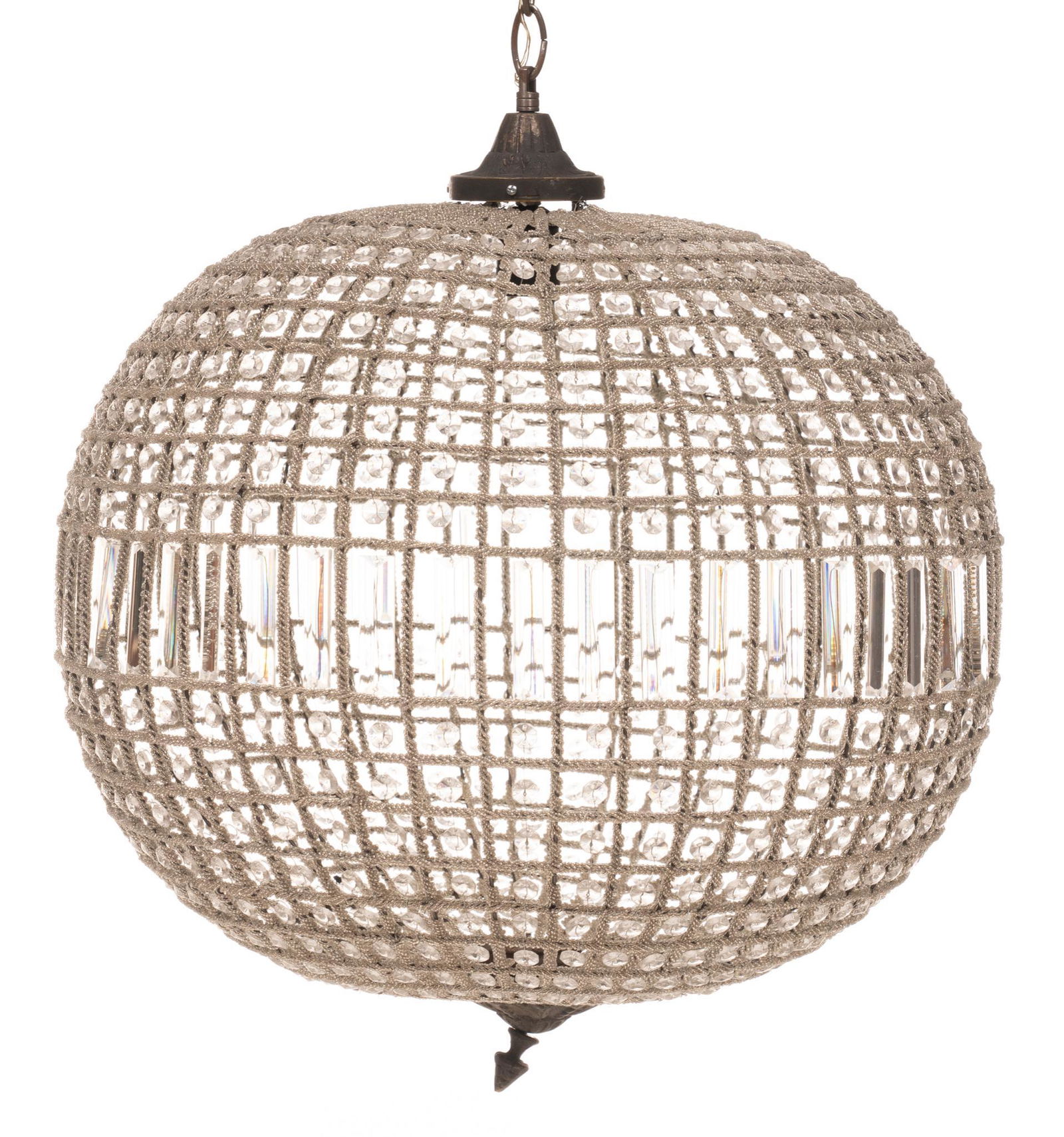 SoldFrench Empire Globe ChandelierFrench Empire-style chandlier, silver tone gilt metal globe with openwork acrylic accents enclosing single-light 36"h x 25"d State wide delivery is available for this item. Please email shipping@vogtaSee Sold Price