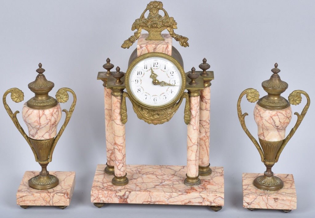 (3) LOUIS XVI STYLE ORMOLU-MOUNTED ROUGE MARBLE CLOCK GARNITURE SETAustin Auction Gallery4.7(1.2k)$1,5002 days Left
