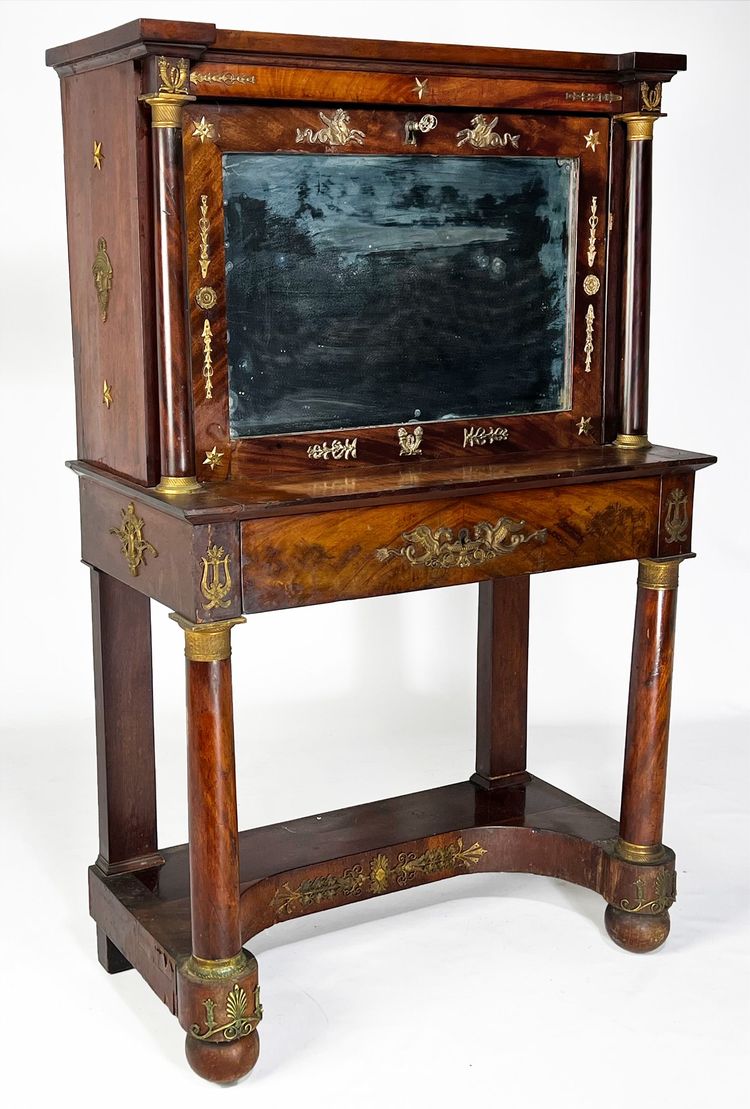 A NEOCLASSICAL STYLE BRONZE ORMOLU-MOUNTED MAHOGANY AND SATINWOOD MARQUETRY SECRETAIRE A ABATTANT,Simpson Galleries, LLC4.5(249)$30011 hrs Left