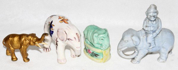 FRENCH FAIENCE ELEPHANT & THREE OTHER FIGURES