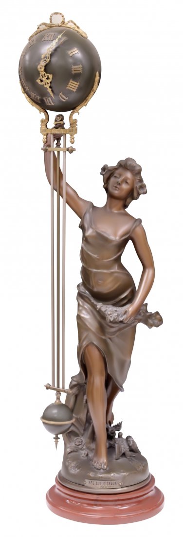 FRENCH FIGURAL SWINGER BALL CLOCK, 41"