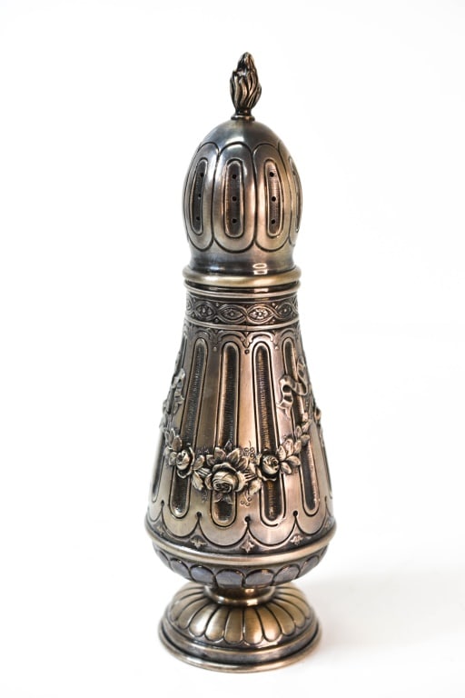 A composed lot of two antique silver variously decorated sugar spreaders3 days LeftChinese bronze vase with Lotus and Koi - China18th century American colonial silver shaker-muffineer. W.H. maker's marks. Marked twice on coverMar 01, 2026Whiskey Bottle, Solid Sterling Silver, Marked Shiebler & Co, Model #2251Mar 21, 2026AN INDIAN SILVER ROSEWATER SPRINKLER GULAB PASH, 19TH CENTURYMar 06, 2026French Silver Coffee PotMar 16, 2026ENGLISH SILVER MFG TEAPOT2 days LeftA Han Dynasty copper gold and silver Boshan furnaceMar 07, 2026Decorative Judaica Spice Tower with Star of David FinialMar 05, 2026George II Sterling Silver Sugar CasterMar 16, 2026French Renaissance Style Silver Seal with Coat of Arms5 days LeftTiffany & Co. Makers sterling silver muffineer, early 20th century. Relief spiral gadrooning andMar 01, 2026Candlestick. 925 silver.7 days LeftGeorge I English Silver Thurible, Anthony Nelme3 days LeftAntique Silverplate Baluster Coffee PotMar 17, 2026Handmade 925 Sterling Silver Ornate Wine Bottle 14.5"Mar 04, 2026
