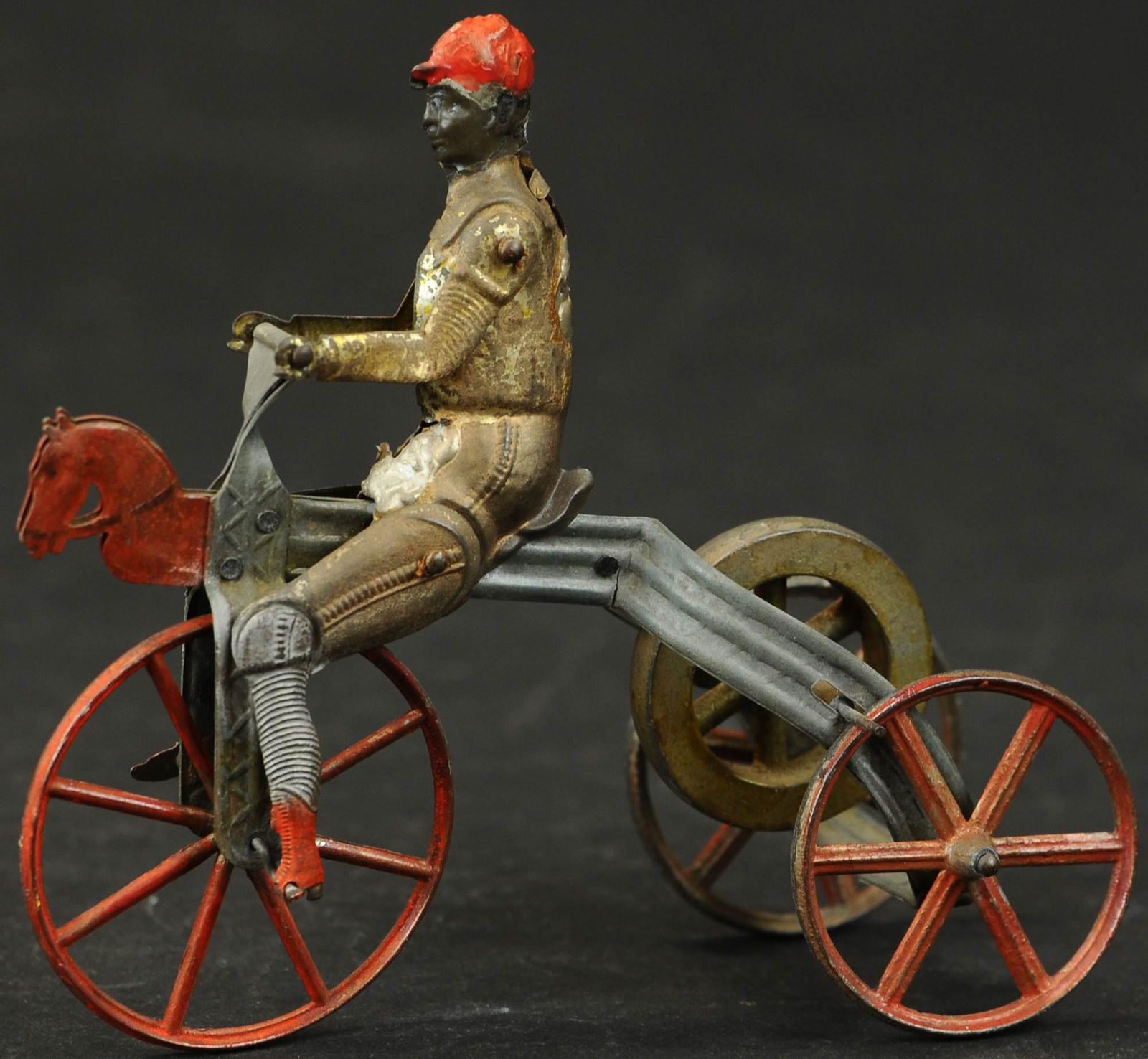 Iron and Wood Figural VelocipedeFeb 27, 2026Cast Iron Sulky Cart, Horse, and Driver. Appears to be original paint, unusual spring mechanism, 12"Feb 24, 2026ISSMAYER MAN RIDING TRIKEFeb 27, 2026HESS GERMANY 1063 FLIRT TOURERFeb 27, 2026HESS GERMANY FLIRT ROLLER TOURERFeb 27, 2026HESSMOBIL GORDON BENNETT STYLE RACERFeb 27, 2026SK SANKYO JAPANESE HESS RACER COPYFeb 27, 2026ISSMAYER CHAUFFERS CAR LIMOUSINEFeb 27, 2026HESS GERMANY AVANTI RACERFeb 27, 2026LARGE INDIAN CYCLE W/ SIDECAR PENNY TOYFeb 27, 2026HESS GERMANY GREEN TWO SEAT RACERFeb 27, 2026MARX SPEED BOY DELIVERY CYCLEFeb 27, 2026ASHIO JAPANESE EXPRESS CYCLEFeb 27, 2026ISSMAYER HORSELESS AUTO DELIVERY WAGONFeb 27, 2026Hand wrought iron toy tricycle, wood seat and handles.Feb 25, 2026HESS GERMANY UNMARKED RACERFeb 27, 2026