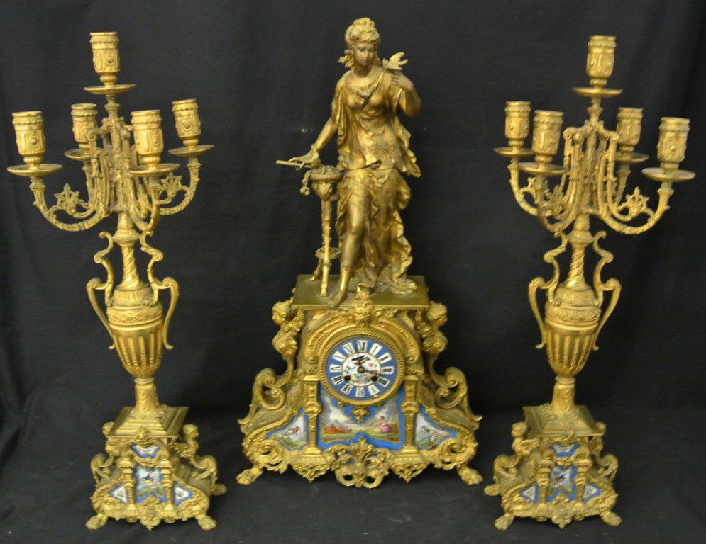 (3) SEVRES STYLE PORCELAIN & BRONZE MANTEL CLOCK & CANDELABRA GARNITURE SETAustin Auction Gallery4.7(1.2k)$300(1 bid)22 hrs Left