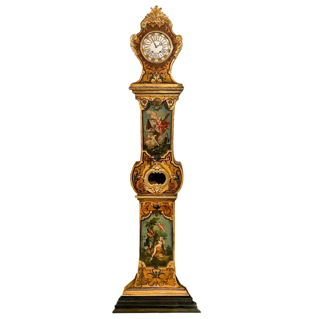 French Gilt Bronze Mounted & Painted Case Clock
