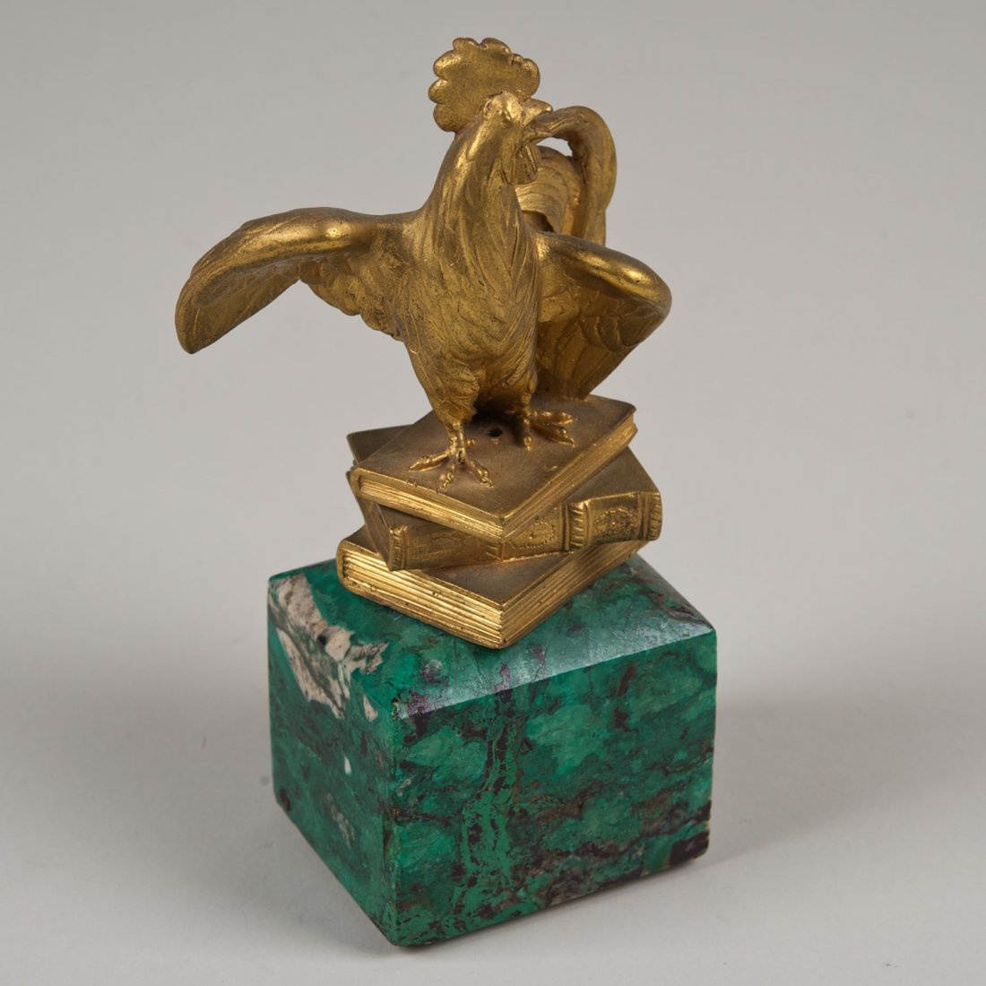 French gilt bronze rooster on book stack