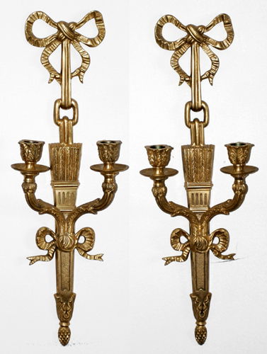 FRENCH GILT METAL TWO-LIGHT SCONCES, PAIR