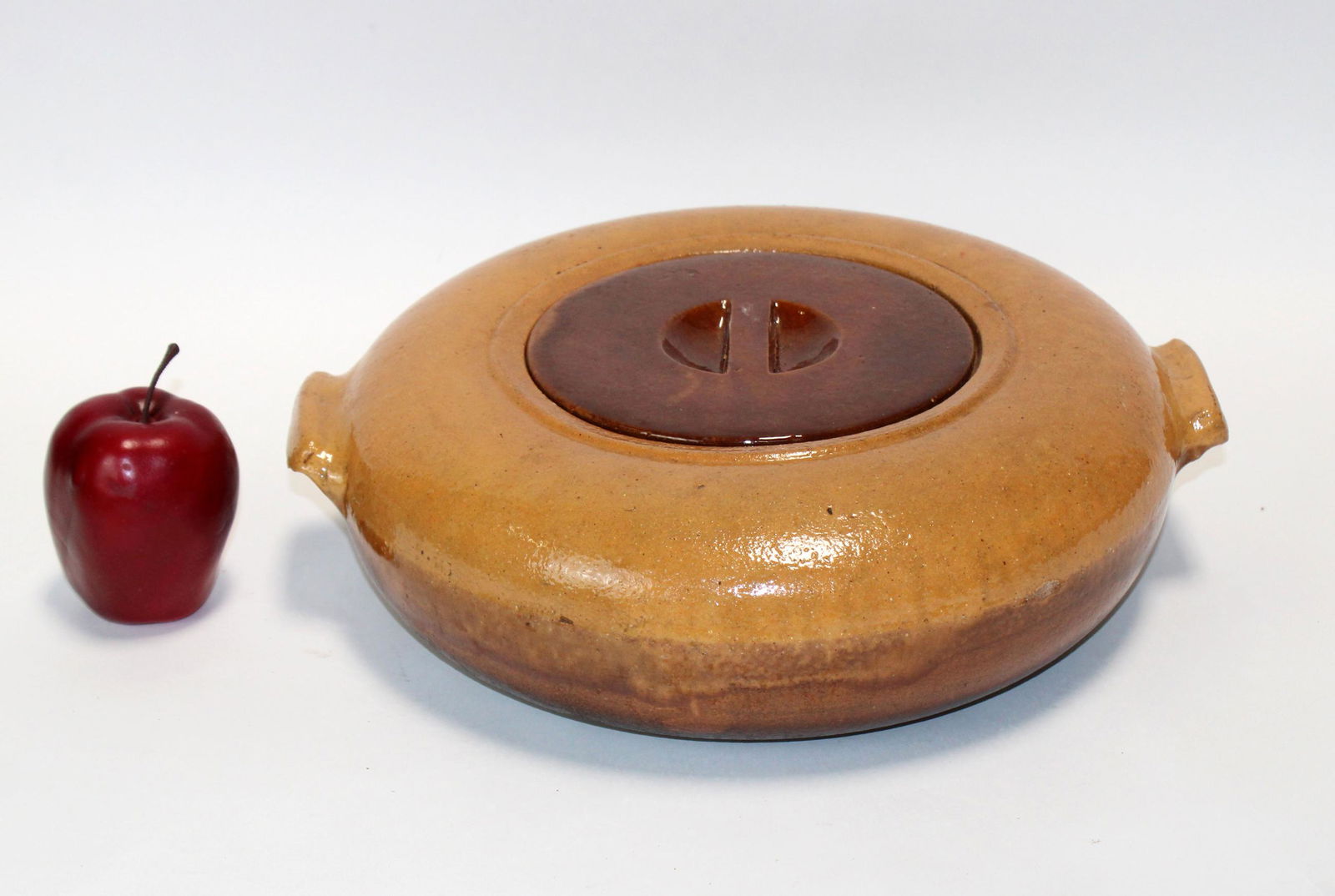 French glazed terra cotta lidded baking dish