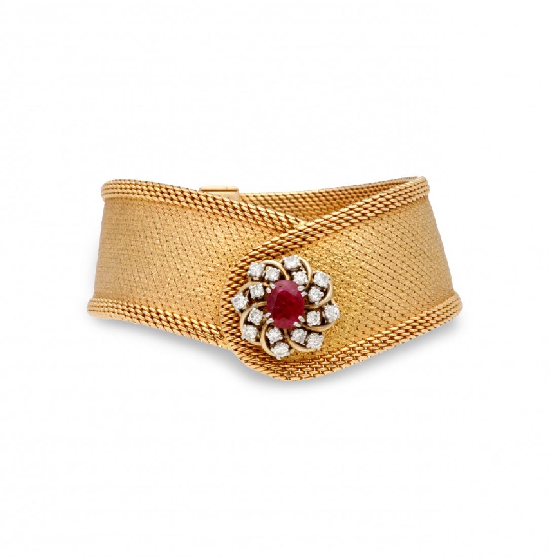 A ruby, diamond and 18K yellow gold bracelet,length approximately 7in (17.75cm); width .5in (14mm)Andrew Jones Auctions4.7(227)$3,600(2 bids)2 days Left