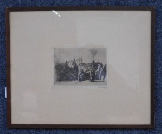 French Horses By Daniel Garber, Etching, Signed