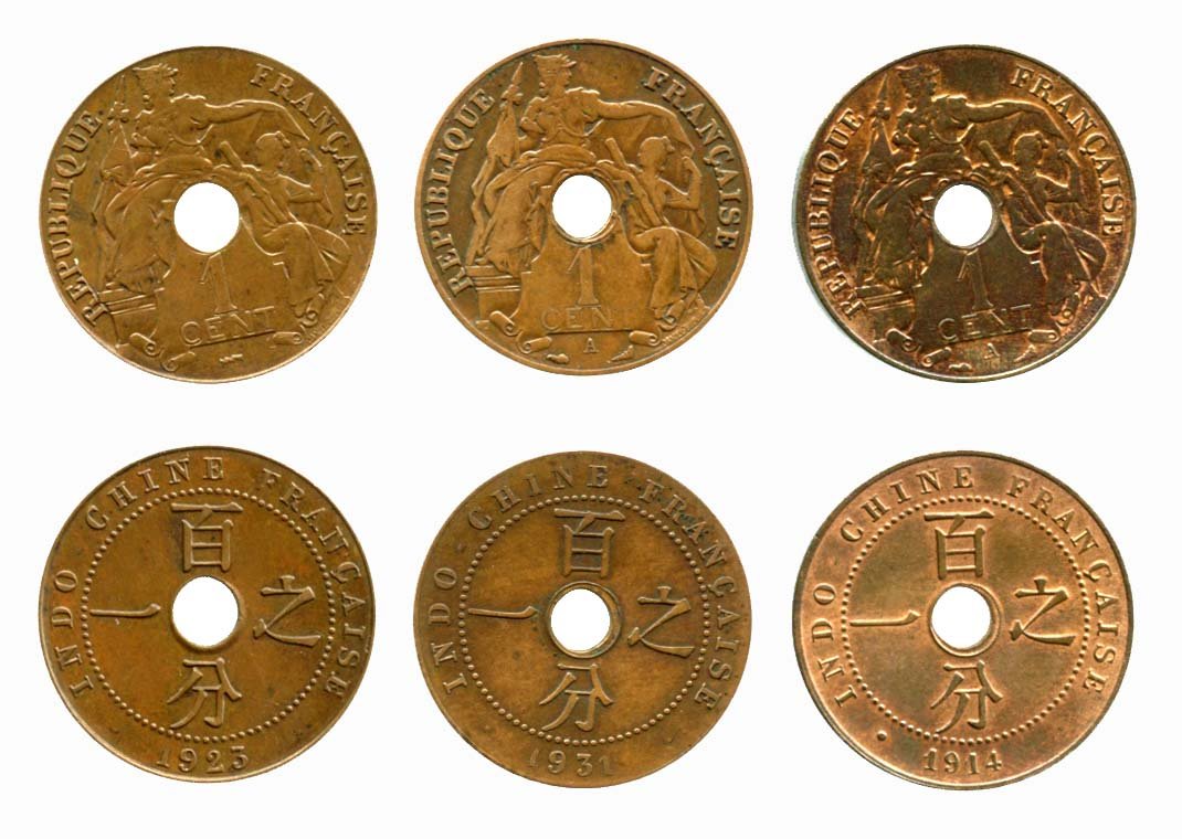 FRENCH INDO-CHINA Bronze: 1-Cent. Various