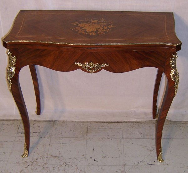 French inlaid serpentine front game table
