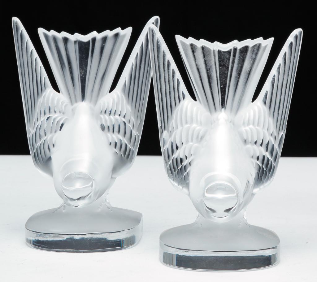 FRENCH LALIQUE "SWALLOWS" BOOKENDS.