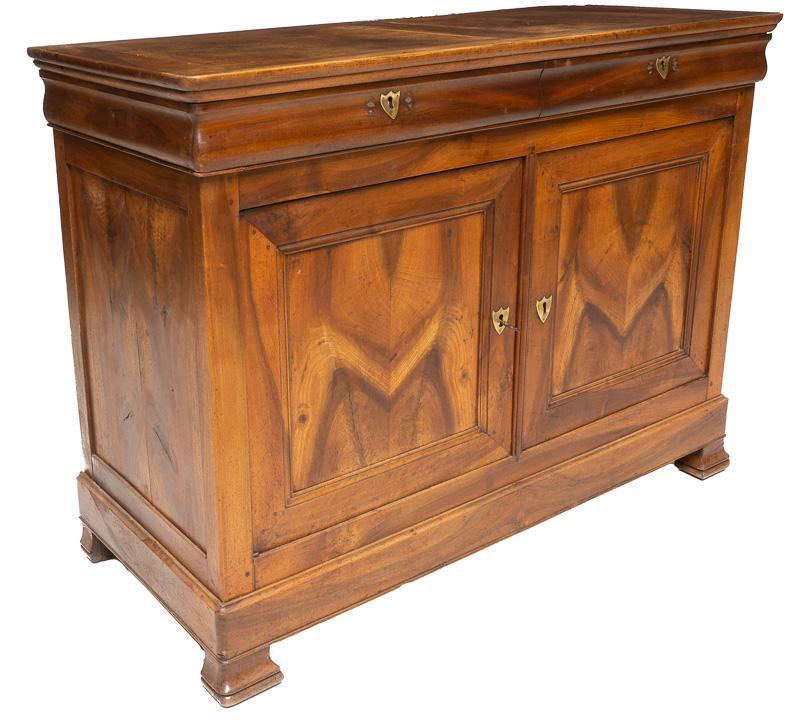 SoldFRENCH LOUIS PHILIPPE WALNUT BUFFET SERVERFrench Louis Philippe period walnut buffet, mid 19th c., having two drawers above a double door cabinet fitted with single shelf, approx 38.5"h, 53.25"w, 24"d Start Price: $350.00See Sold Price