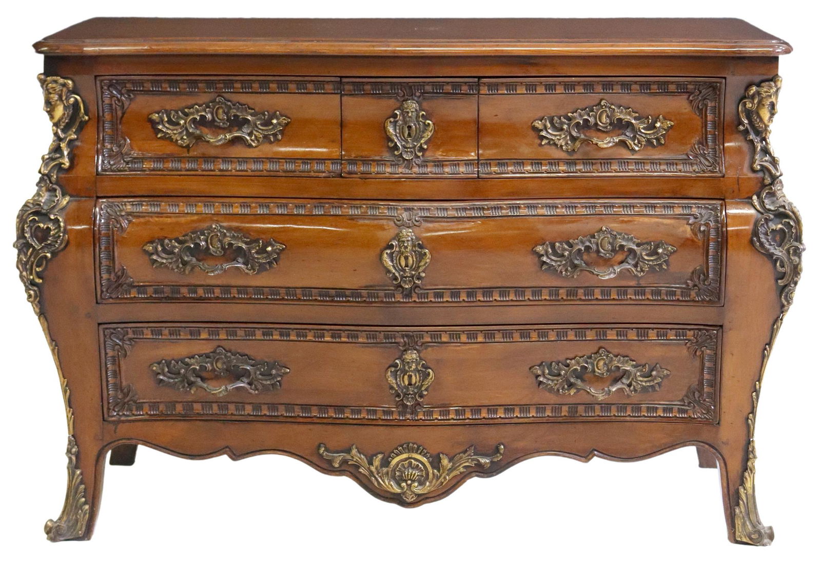 FRENCH LOUIS XV STYLE CARVED WALNUT COMMODE
