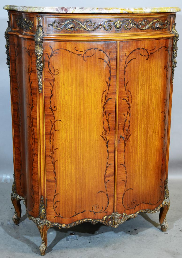 French Louis XV Style Marble Top Tall Chest