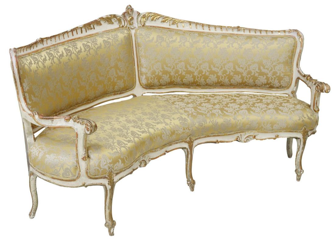FRENCH LOUIS XV STYLE CURVED CORNER SETTEE