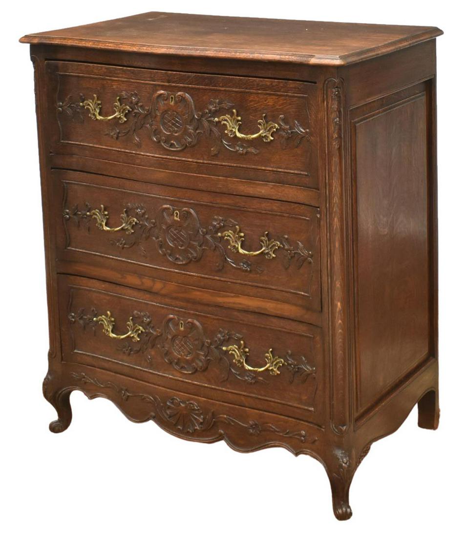 FRENCH LOUIS XV STYLE OAK THREE-DRAWER COMMODE