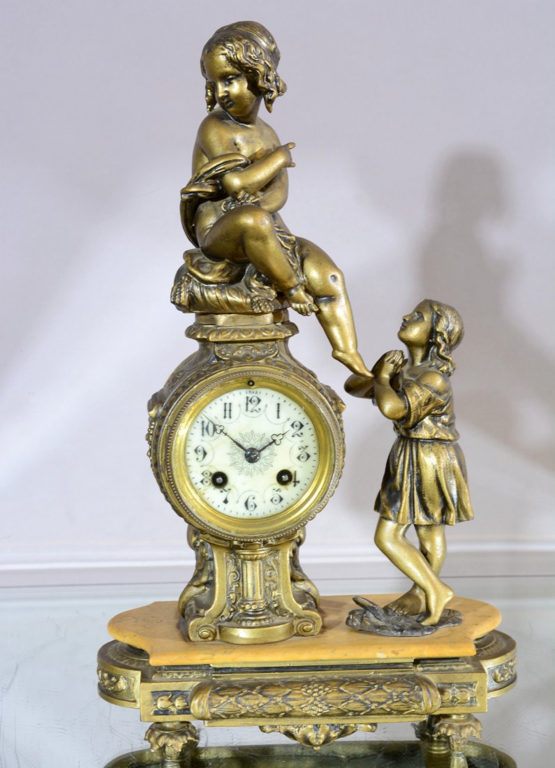 An antique French Louis XVI polychrome gilt carved wooden figural mantel clockOstantix Auctions4.4(13)€3403 days Left