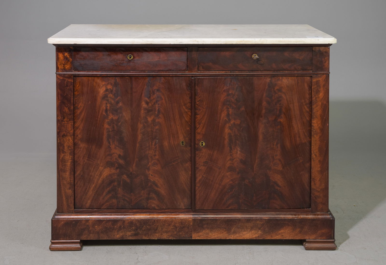 French Mahogany White Marble Top Buffet