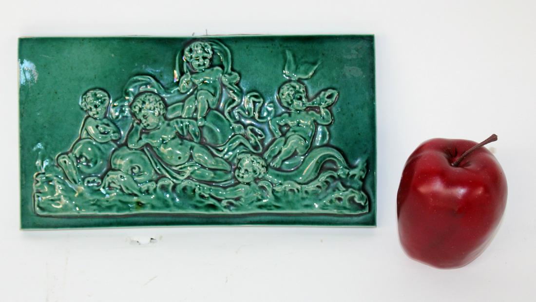 French Majolica tile with cherubs