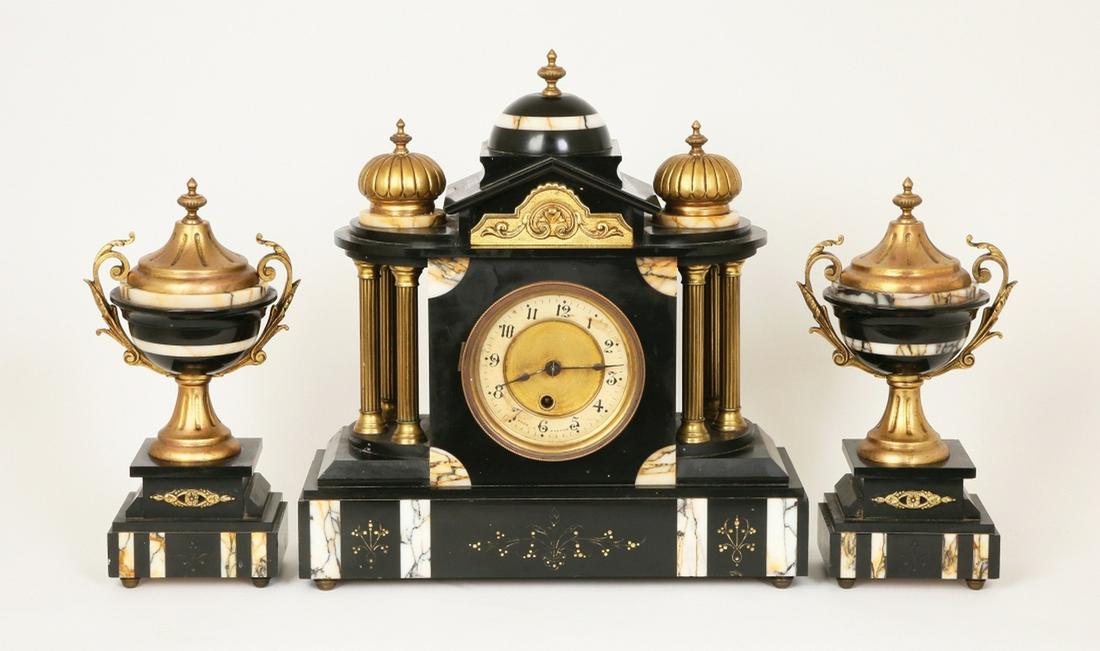 (3) FRENCH LOUIS XVI STYLE ORMOLU-MOUNTED MARBLE CLOCK & CANDELABRA GARNITURE SETMar 29, 2026(3) FINE FRENCH SILVERED & GILT-BRONZE CHINOISERIE MANTEL CLOCK & GARNITURE SETMar 29, 202619th C. Beurdeley 3 Pc. Gilt Bronze Mounted Marble Clockset w/ Wedgewood Plaques, Circa 18803 days Left(3) FRANZ HERMLE LOUIS XIV STYLE MANTEL CLOCK & CANDELABRA GARNITURE SETMar 29, 2026French Enamel Gilt Bronze Chinoiserie 3 Piece Garniture Mantel Clock Set3 days Left(3) FRENCH LOUIS XV STYLE GILT-METAL MANTEL CLOCK & CANDELABRA GARNITURE SETMar 29, 2026Set of 3 French Ormolu Bronze Louis XVI Mantel Clock with Sevres Style CandelabraMar 21, 2026French Louis XIV Style White Marble Bronze Clock and Candelabra Set of 3Mar 20, 2026French Bronze Mantle Clock and Candelabras, Ca. 19th C., H 20" 3 PCSMar 19, 2026Exquisite French Champleve Enamel & Bronze Clock set3 days LeftOrnate Gilt Bronze,Glass and Marble Mantel Clock4 days Left19th Century French Dore Bronze Clock Set with Candelabras1 day Left19th Century Viennese Enamel Bronze Mounted Desk Clock3 days Left19th C. Tiffany & Co. French Champleve Enamel & Gilt Bronze Figural Clockset3 days Leftc.1860 Ad Mougin Louis XVI Gilt Bronze Clock Set, 3 PCSFrench Clock Set3 days Left