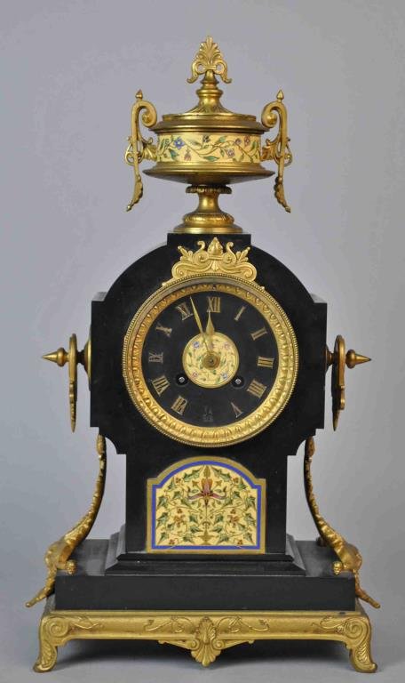 FRENCH MARBLE, BRONZE & CHAMPLEVE MANTEL CLOCK