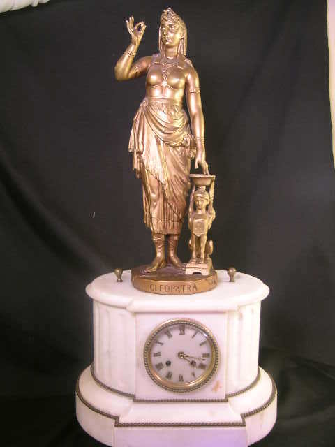 FRENCH MARBLE FIGURAL MANTLE CLOCK CLEOPATRA