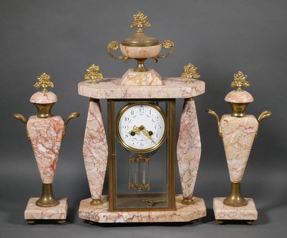 (3) LOUIS XVI STYLE ORMOLU-MOUNTED ROUGE MARBLE CLOCK GARNITURE SETAustin Auction Gallery4.7(1.2k)$1,5003 hrs Left
