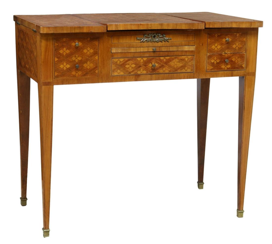 French Art Deco Flip Top Madagascar Rosewood & Brass Dressing Table VanityVintage French Louis XVI Style 3-Drawer Marquetry Ormolu CabinetAn Italian Neoclassical mahogany dressing table22 hrs LeftFrench 18th C. Inlaid Provincial Drop-Front Desk with Cabriole LegsFeb 15, 2026A LOUIS XV-STYLE TULIPWOOD, AMARANTH AND MARQUETRY POUDREUSE LATE 19TH/EARLY 20TH CENTURYFeb 18, 202619th century cylindrical desk in Louis XVI style marquetry, 19th centuryFeb 12, 2026Y A LOUIS XVI KINGWOOD AND SPECIMEN MARQUETRY TWO TIER WRITING TABLEFeb 18, 2026Louis XV-Style Marquetry Kingwood Bureau Plat2 days LeftA FRENCH ORMOLU-MOUNTED TULIPWOOD, FRUITWOOD, BURR BIRCH AND MARQUETRY TABLE A ECRIRE 19TH CENTURYFeb 18, 2026A Louis XV style parquetry bureau plat22 hrs LeftA George III inlaid mahogany sideboard22 hrs LeftLouis XV Style Kingwood and Marquetry Bureau PlatMar 05, 2026Louis XV Style Kingwood Marquetry Commode3 days LeftA FRENCH ORMOLU-MOUNTED TULIPWOOD, AMARANTH AND MARQUETRY TABLE EN CHIFFONNIERE 19TH/20TH CENTURYFeb 18, 2026A GEORGE III SATINWOOD-INLAID MAHOGANY SIDEBOARD CIRCA 1780Feb 18, 2026George III Mahogany Dressing Table, England, 19th century,