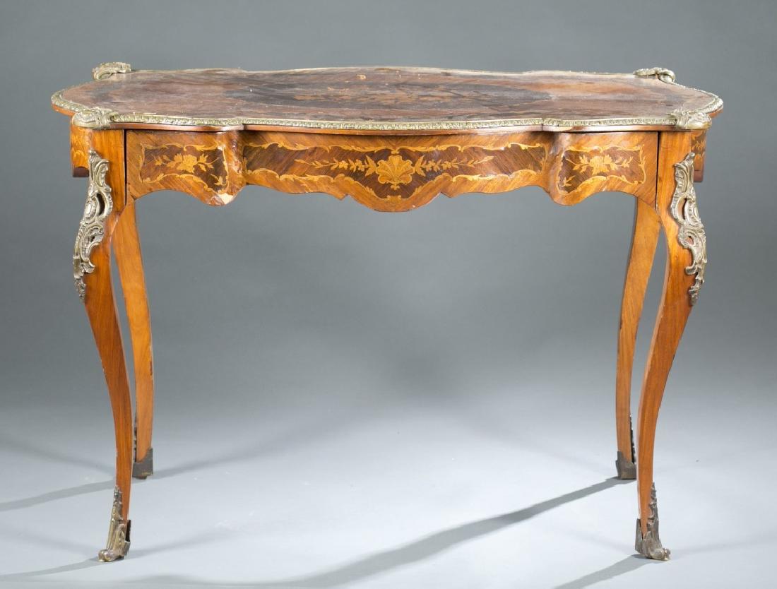 Louis XVI Revival Guéridon2 days LeftLouis XV Style Writing Desk2 days LeftVintage French Louis XVI Style Demilune Console TableLouis XV Style Marquetry Inlaid Brass Bound DeskLouis XVI Marquetry Inlaid Flip-Top Games TableMar 07, 2026Louis XV Style Marquetry Kingwood Table, 19th C.Mar 19, 2026A Victorian gilt bronze mounted walnut and marquetry bureau plat, manner of Edward Holmes Baldock2 days LeftLouis XV Style Kingwood Marquetry Bouillotte TableMar 05, 2026Fine French Louis XIV Style Ormolu Mounted Marble Top Table w/ DrawerMar 10, 2026A Dutch marquetry center tableMar 03, 2026Louis XVI Style Ormolu and Mahogany Writing TableMar 05, 2026Louis XV Style Kingwood and Marquetry Bureau PlatMar 05, 2026French Louis XV game table.10 hrs LeftLouis XV Boulle Inlaid Table with Bronze MountsMar 07, 2026Louis XV Style Bronze Mounted Mahogany Writing TableMar 12, 202619th Century Louis XV Marquetry Commode with Breche d'Alep Marble Top7 hrs Left