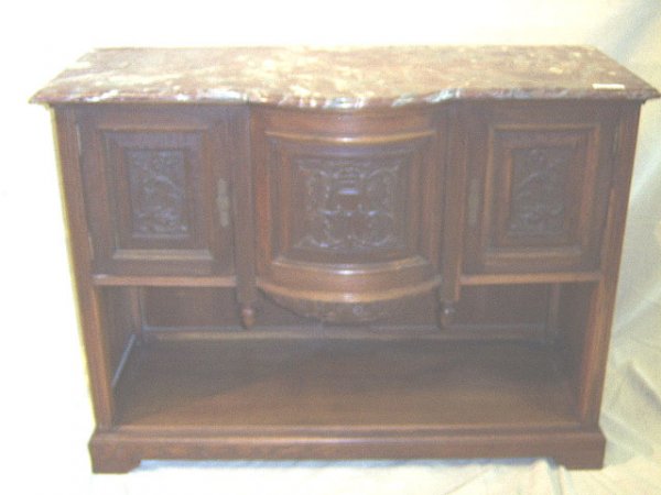 CARVED OAK MARBLE TOP SIDEBOARD HAVING FIVE RELIEF CARVED DOORS AND INTERNAL BANK OF DRAWERS C 1940.Kamelot Auctions4.4(347)$1,000Apr 16, 2026