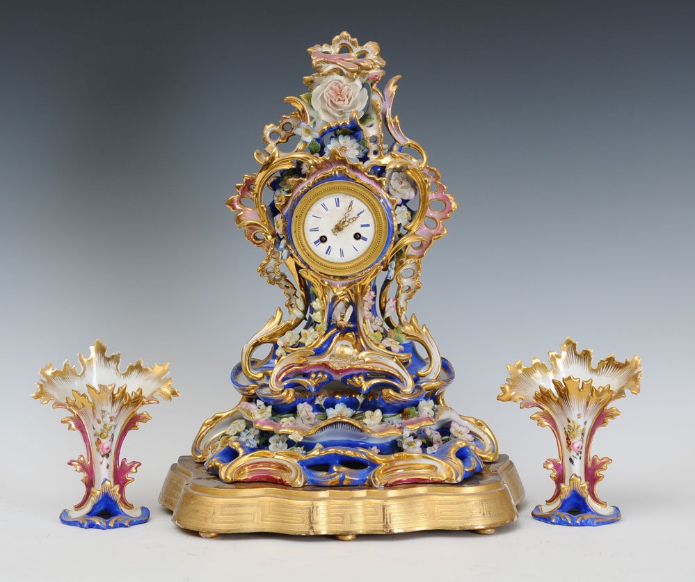 FRENCH SEVRES STYLE PORCELAIN AND ORMOLU MOUNTED CLOCK GARNITURE, 19TH CENTURYLos Angeles Antiques 4.3(12)$9,5006 days Left
