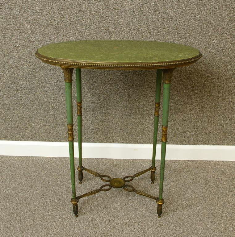 FRENCH ONYX, BRASS AND PAINTED SIDE TABLE