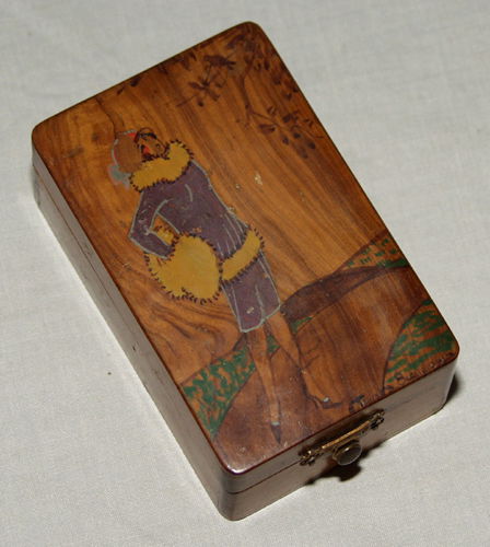 FRENCH PAINTED WOOD BOX, DATED 1923, L 4 3/4"