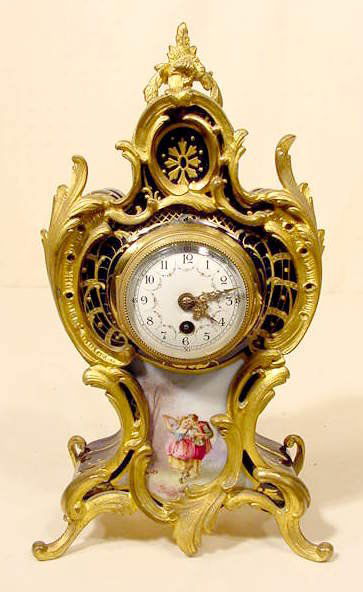 French Porcelain & Bronze Table Clock NR