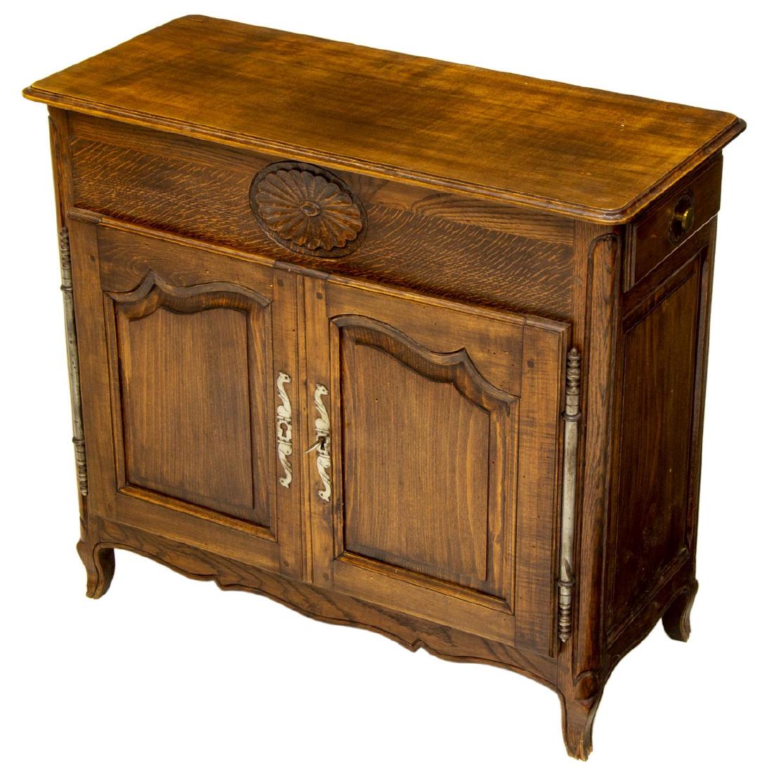 SoldFrench Provincial ServerAntique walnut two-door server. [62" L x 1" D x 39" H]. Splits on top and sides, wear.See Sold Price