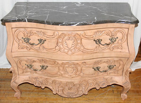 FRENCH PROVINCIAL STYLE MARBLE BOMBE COMMODE