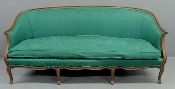 French Provincial style walnut sofa. 33”h.x77”l.x3