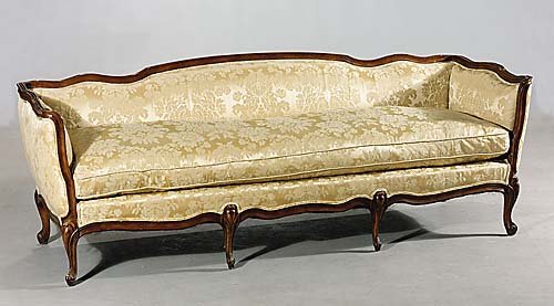 French provincial upholstered walnut sofa