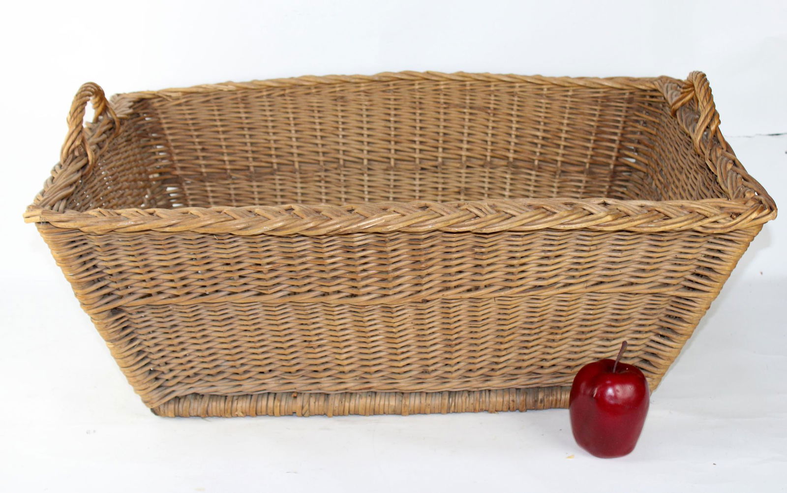 Charming Vintage Rectangular Wicker Basket with Braided Handles