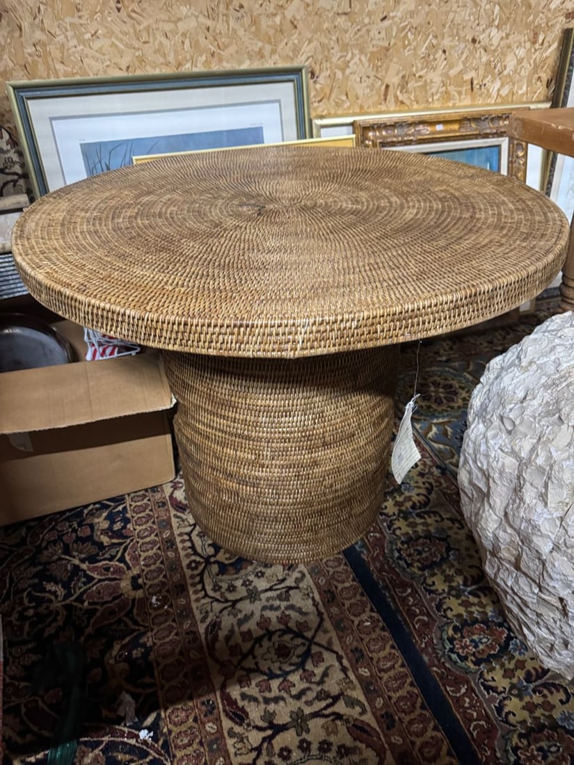 French Rattan Two Piece Round Table